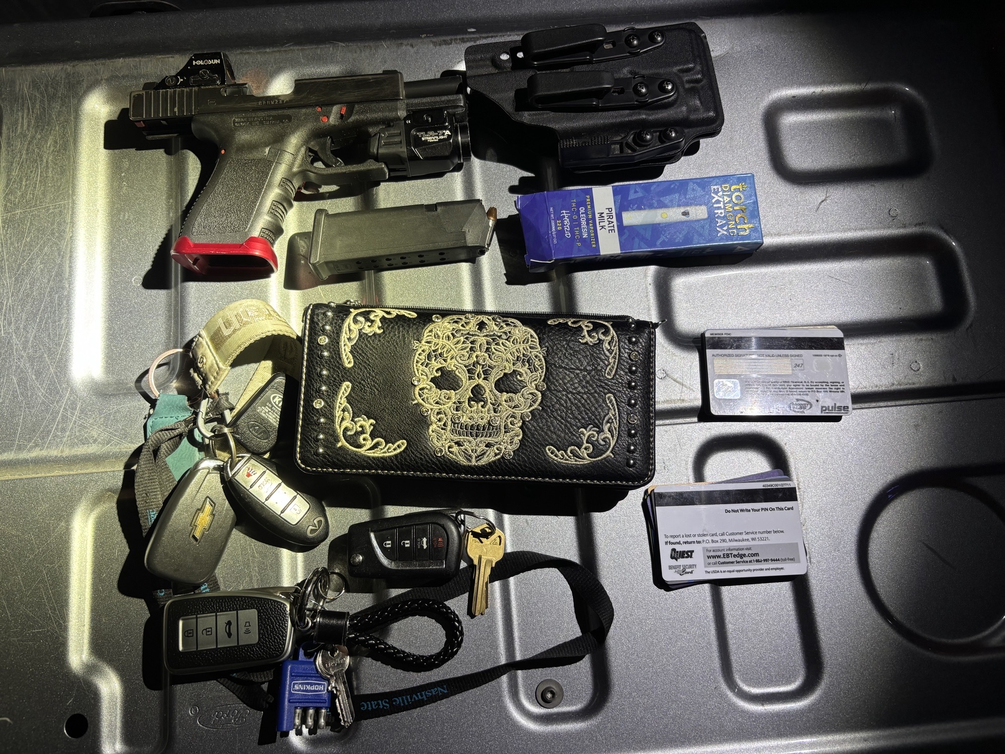 While flying over the haunted house parking lot, the helicopter crew saw windows being shattered on at least three parked cars and persons diving into them to rummage for valuables. The car burglars drove away in a sedan with the helicopter following from above. After about 15 minutes of riding through the Madison area, the burglars wound up on Brick Church Pike and pulled into the parking lot of a strip mall. At that moment, undercover detectives moved in and apprehended all four after short foot chases. A pistol and evidence from vehicle break-ins were recovered from their car.